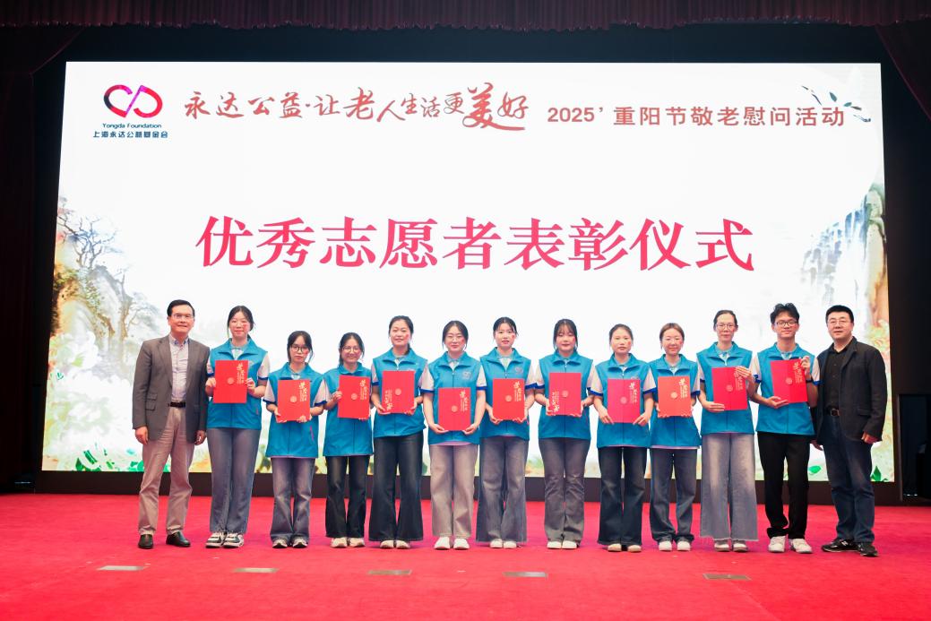在温馨的氛围中,心理学院志愿者团队带来精彩互动表演。学生们通过深情的朗诵和动人的歌曲,展现新时代青年的敬老情怀。随后的优秀志愿者表彰环节,陆小平秘书长与王军峰副秘书长共同为优秀志愿者颁发证书,肯定他们在为老服务中的辛勤付出。