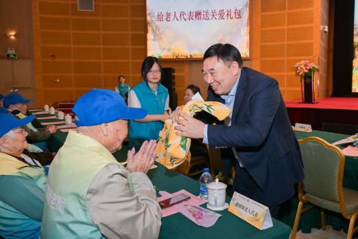 文艺演出环节,上海师范大学学子带来了多个精彩节目,尽显青春风采。在情意浓浓的重阳礼包赠送仪式上,与会领导共同为养老机构及老人代表送上满载祝福的节日礼物。